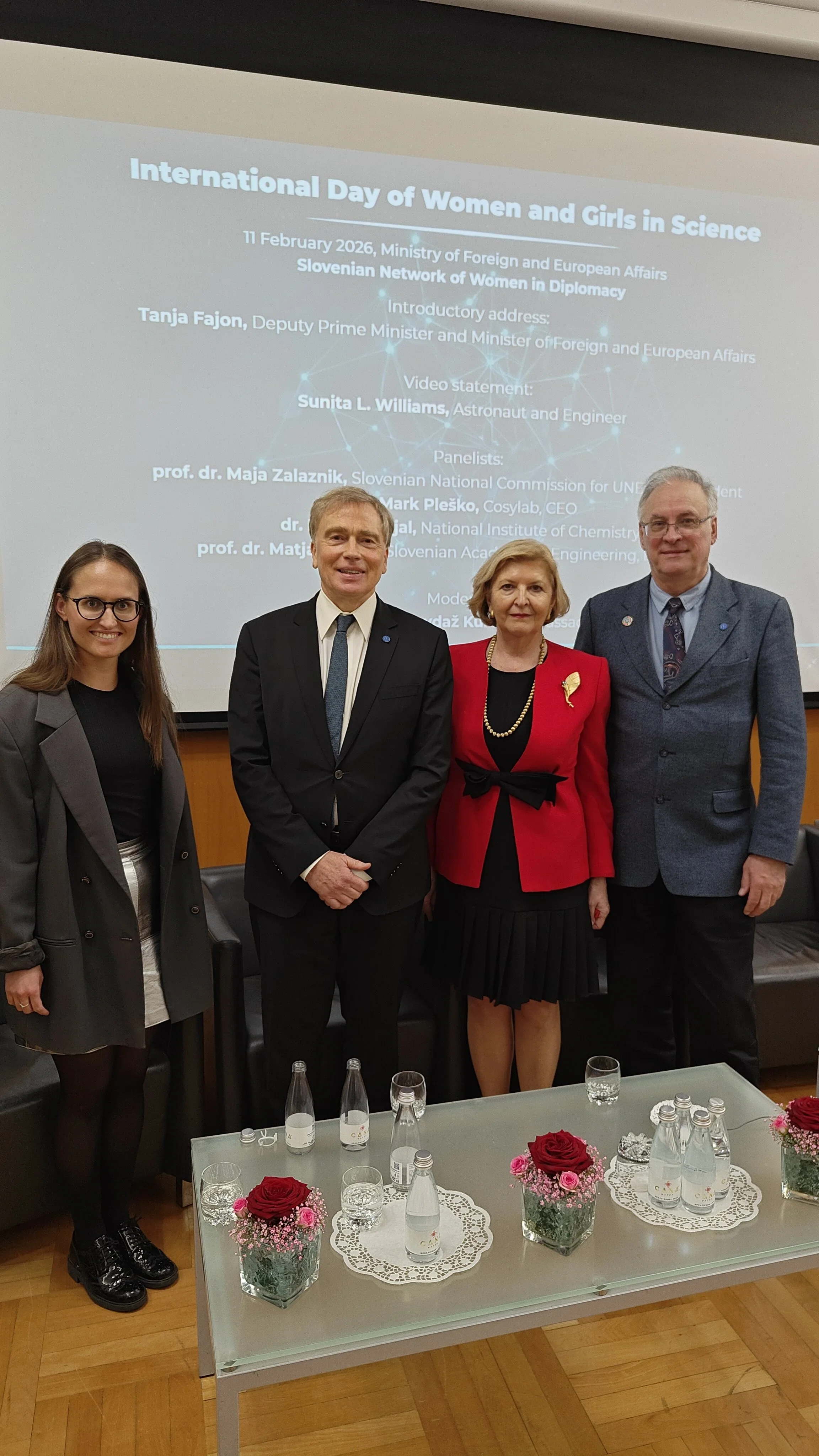 The Ministry of Education, Science, and Innovation organized a panel discussion on the International Day of Women and Girls in Science. The event took place in Ljubljana on February 11, 2026, at the Ministry of Foreign and European Affairs (MZEZ), organized by the Slovenian Network of Women in Diplomacy.